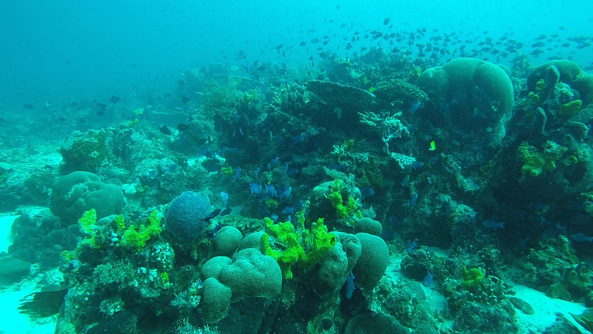 Les fonds y sont très jolis avec une mixité entre les requins de récifs, tortues, raie aigle, marble ray, nudibranches… de très jolis coraux de toutes les couleurs et un nombre incroyable de poissons! J’y ai vu mes premiers poissons grenouilles et plusieurs poissons feuilles dont 2 trouvés toute seule (clin d’oeil pour Loic).