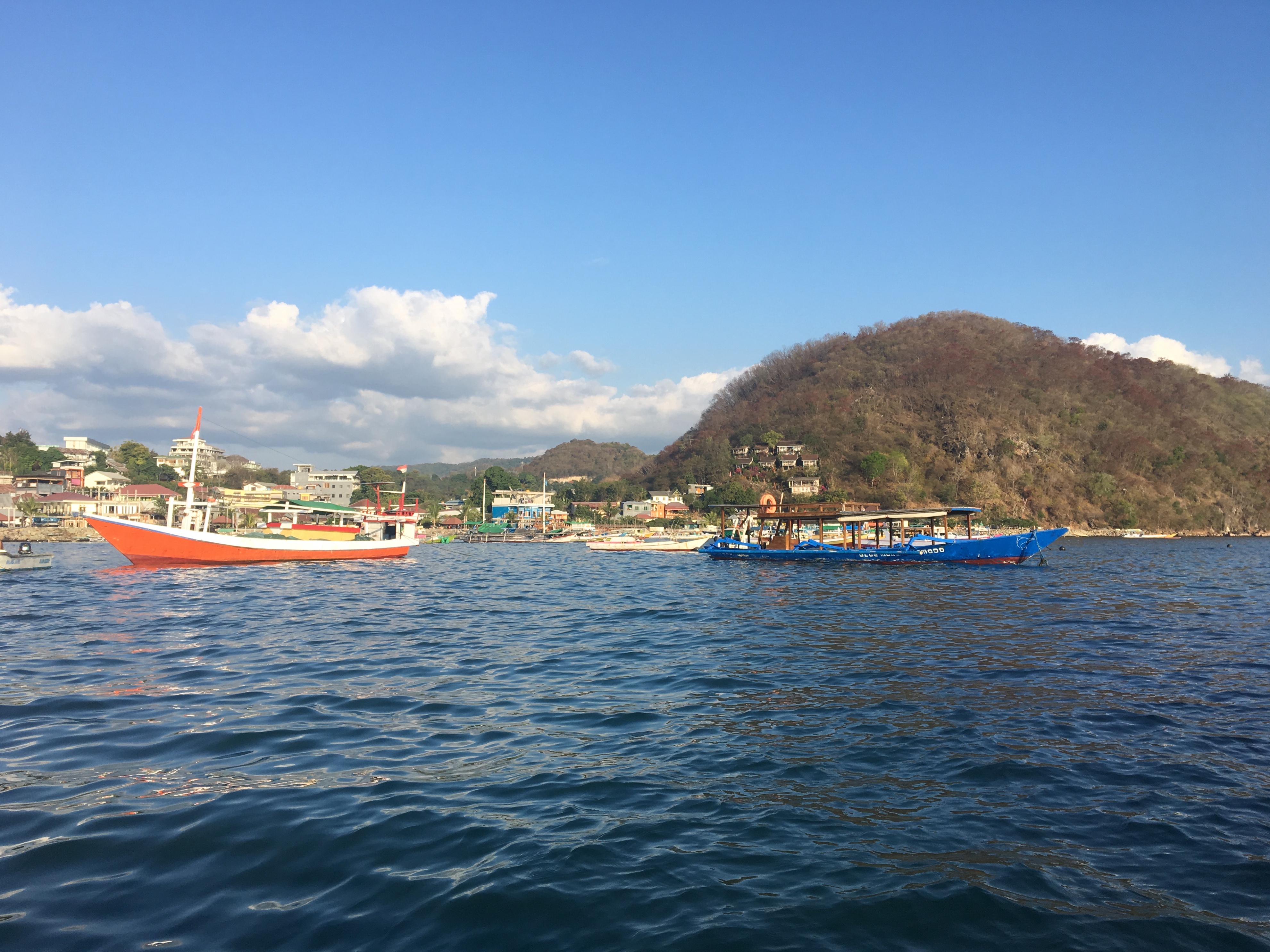 Labuan Bajo est la capitale du district de Manggarai Barat et se situe à l’Est de l’ile de Flores. C’est le lieu de départ pour visiter le parc de Komodo si connu pour ses dragons et ses sites de plongées. Concernant les dragons, je souhaitais aller les voir mais de ce que j’ai compris, c’est la saison des amours; il est donc difficile d’en voir ou alors certains qui sont nourris. J’ai donc choisi de ne pas y aller pour cette fois. Ayant 3 jours pleins sur place, cela oblige à faire des choix! J’ai donc fait 2 journées de plongées avec Scuba Republic (la même structure qu’à Bira) et les fonds y sont superbes!!! Les coraux sont de toutes les couleurs, en très bon état, très nombreux, il y a beaucoup de vie, j’y ai trouvé les poissons plus gros qu’ailleurs, un peu comme à Raja Ampat; il y a des mantas :), peu moins de requins de récif en cette saison, cela dépend de la période de l’année (la meilleure saison pour la plongée commence en octobre/novembre.
