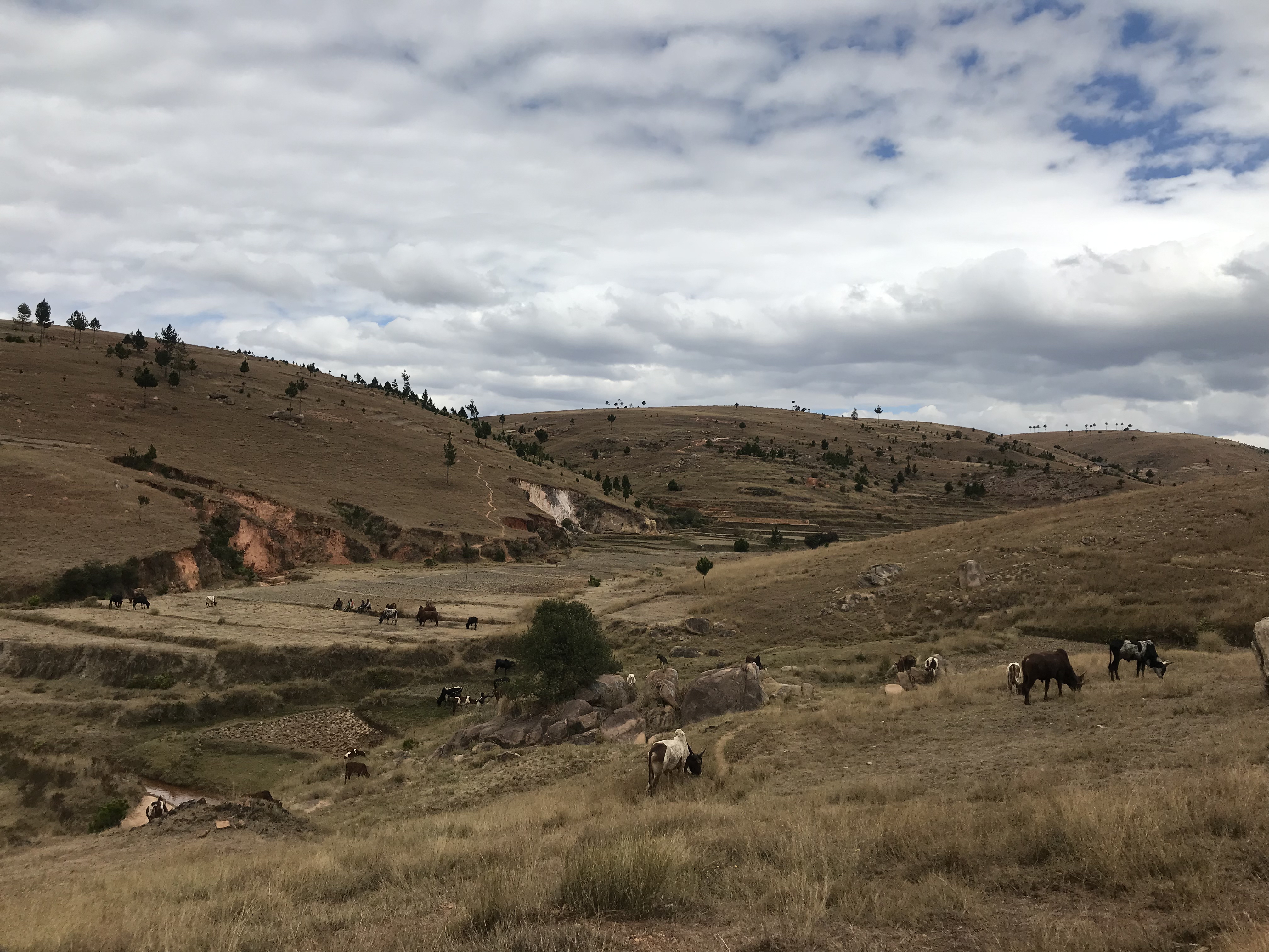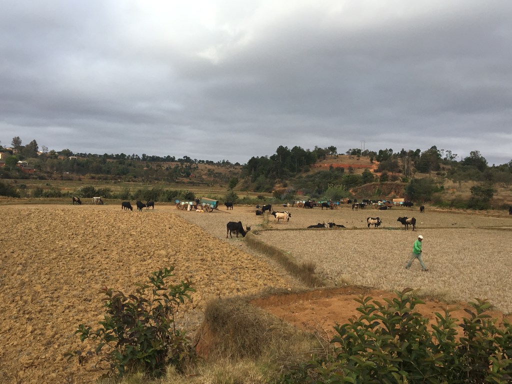 Nous prenons la longue route descendre à Morondova, il faut environ 8h. Nous traversons des paysages arides, des fleuves au niveau d’eau très bas dans lesquels la population se lave; l’eau est d’un marron très foncé. Fénou nous explique que lors de cette saison sèche, des habitants sont attaqués par les crocodiles… Nous prenons réellement conscience de la pauvreté en traversant les villages dans lesquels les familles vivent de rien. Leur maison sont toujours traditionnelles composées de terre crue (de nouveau c’est Jean Laborde qui a introduit cette technique en 1831) au toit en paille souvent appelées « trano gasy ». Ils vont chercher l’eau au puit. Ils cuisinent à même le sol.