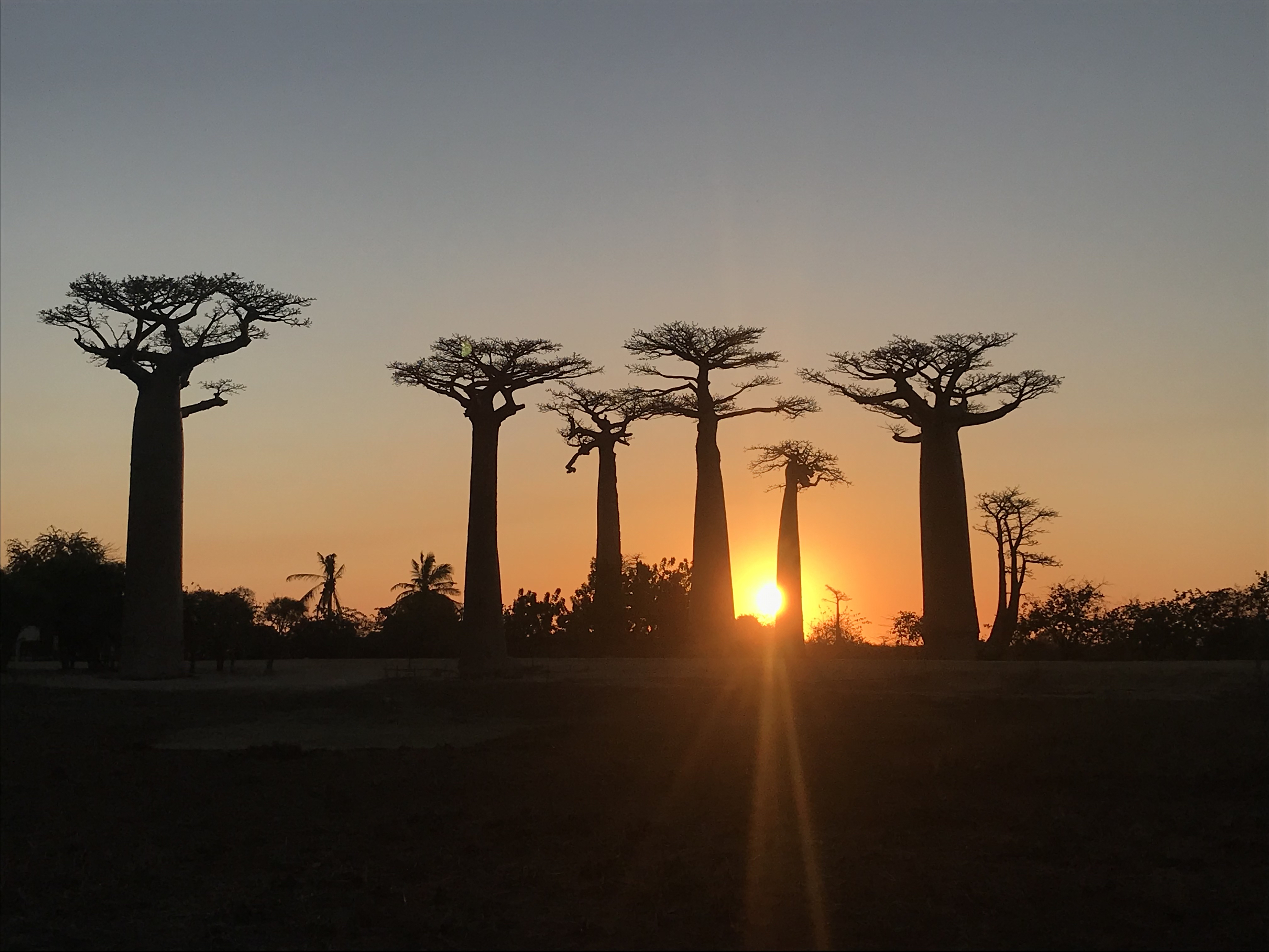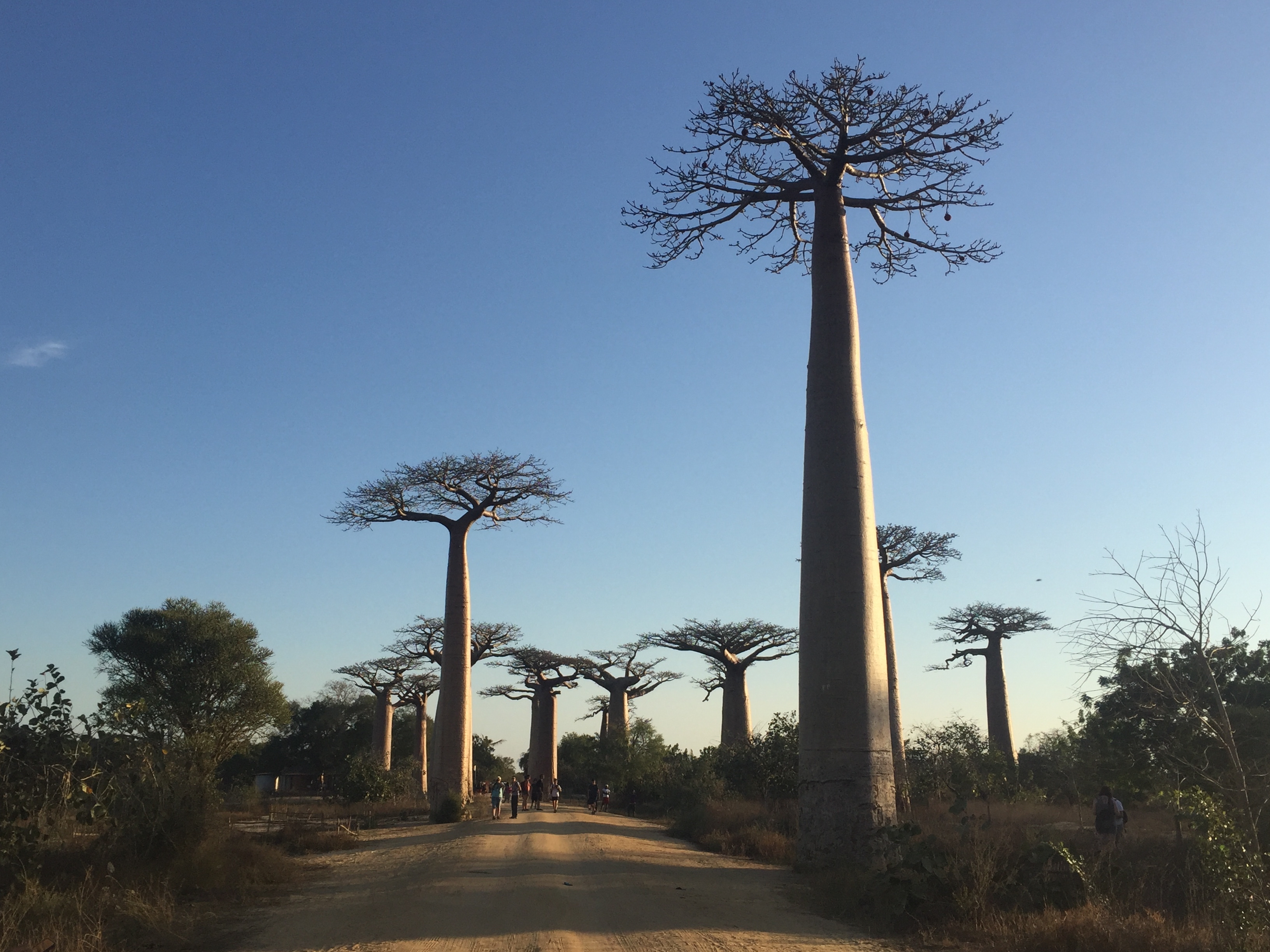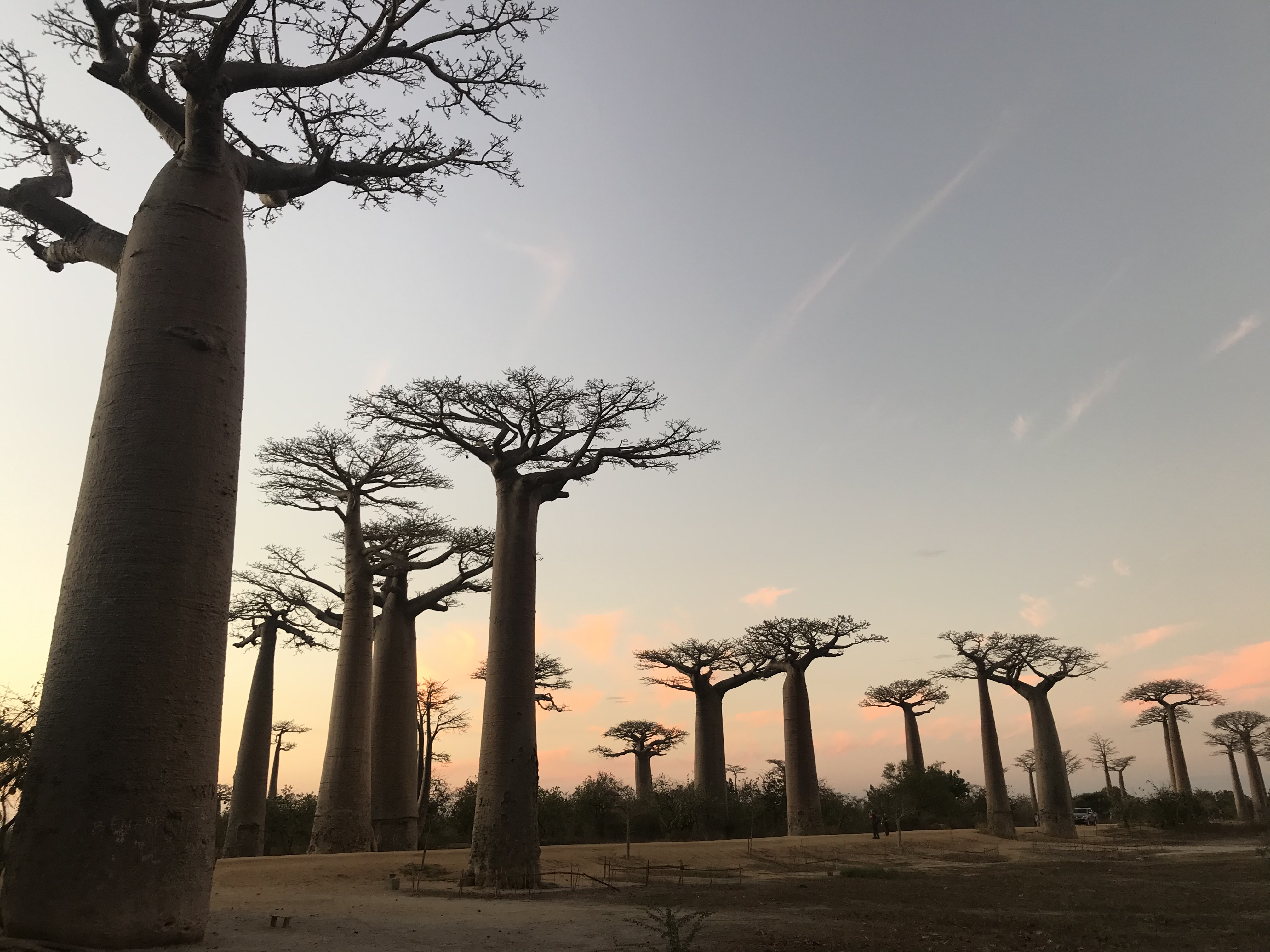 Les baobabs émergent de la savane, 6 espèces sur 8 sont endémiques à Madagascar. Ceux de cette région mesurent jusqu’à 25 mètres de haut et peuvent vivre jusqu’à 1 500 ans. On dit qu’ils sont les ancêtres du monde!