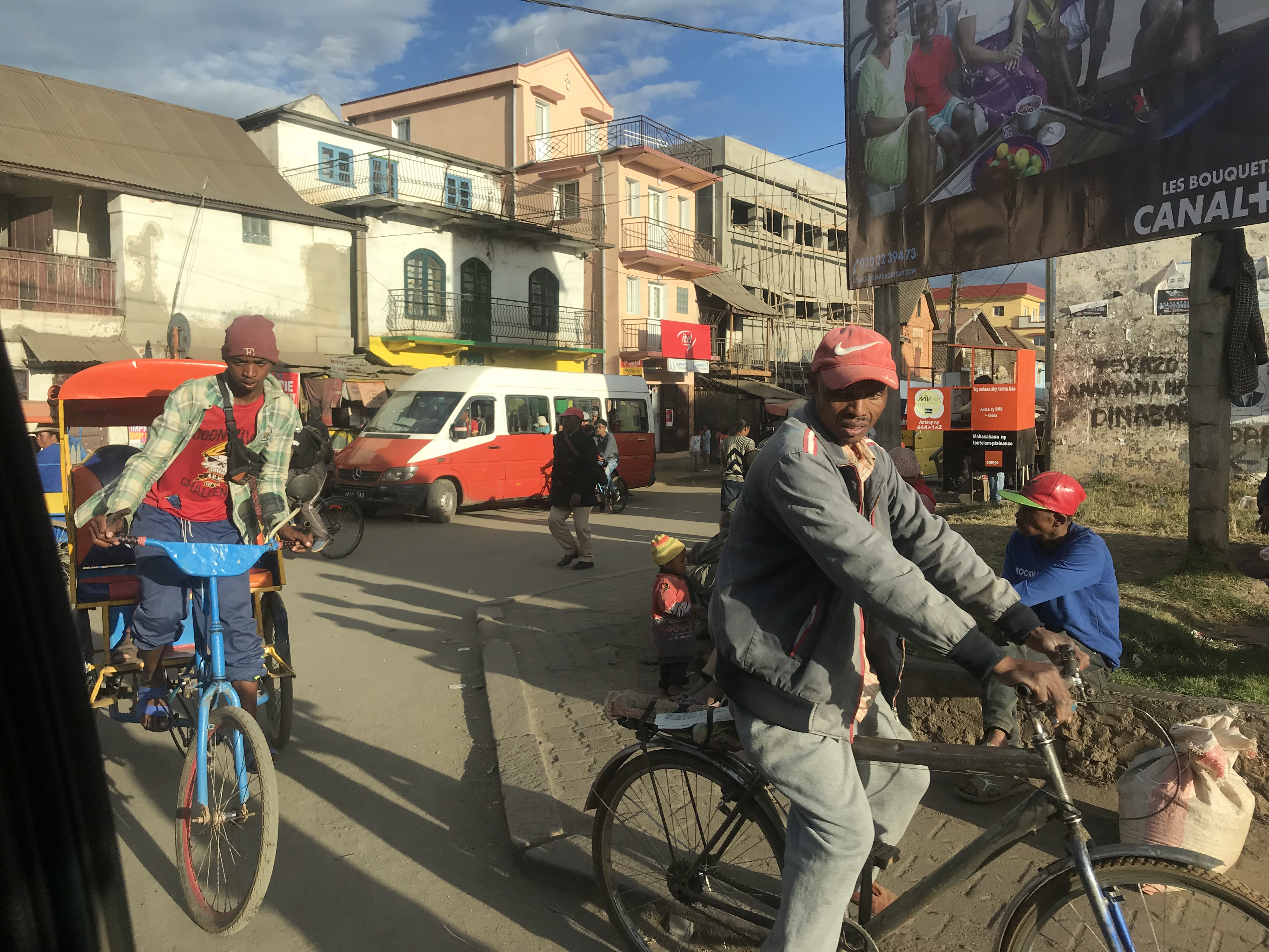 Nous dormons à Antsirabe dans l’hotel Lovasoa 4C; hotel propre, proche du centre ville et charmant d’un style colonial. Vous trouverez facilement des restaurants dans la ville, n’hésitez pas à demander conseil à votre hôtel. Vous verrez de nombreux « hommes zébus » dans cette ville, c’est difficile pour nous occidentaux d’accepter de voir un homme courir parfois pieds nus pour emmener des Hommes d’un point A à un point B, cependant cela est un moyen de transport utilisé et qui permet de gagner de l’argent pour nourrir leur famille. Notre chauffeur a insisté pour que l’on en prenne un pour nous emmener au restaurant; nous lui avons donné plus que le prix standard. Si je me souviens bien, ils louent le tuck-tuck 3euros la journée, soit 4 000 aviary, et la course coûte quelques cents, je n’en ai plus le souvenir exact, mais il faut de nombreux trajets pour rentabiliser leur location et gagner de l’argent.